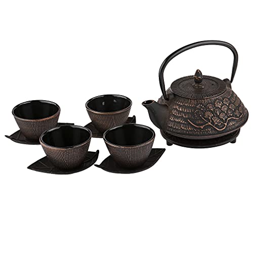 lachineuse - Service à Thé en Fonte Pins Japonais - 1 Théière, 4 Tasses en Fonte & Filtre Infuseur - Capacité 0,8L - Décoration Japonaise Asiatique - Idée Cadeau Vaisselle - Coloris Noir & Bronze