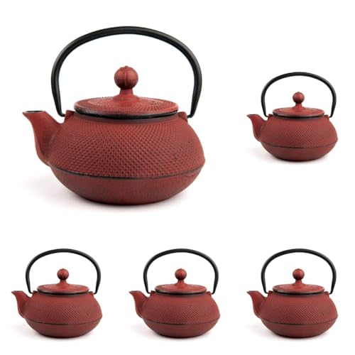 VIER NA034 Théière en Fonte Rouge 0,30 l (Lot de 5)