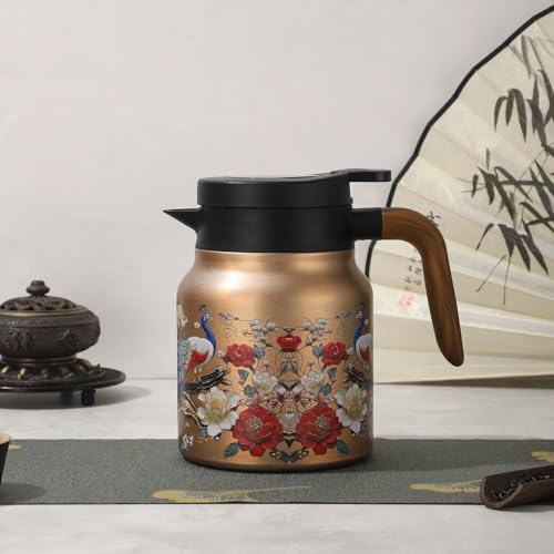 Théière, carafe à café isotherme en acier inoxydable avec passoire à thé, motif floral vintage, thermos à thé en vrac, infuseur à café