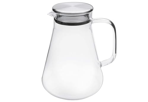 Carafe en verre GK-01-1 litre - En verre borosilicate de qualité supérieure - Couvercle en acier inoxydable - Carafe à décanter - Carafe en verre - Théière en verre pour thé, café, glace, eau froide
