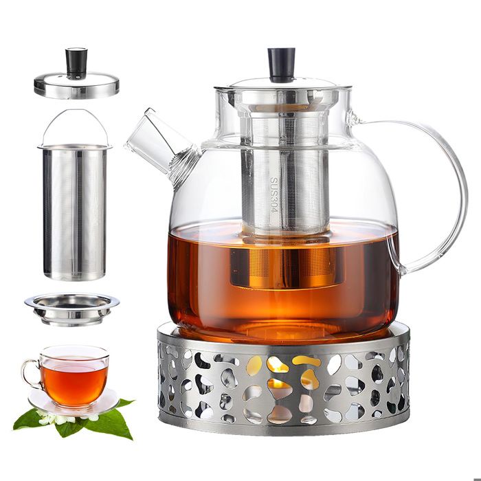 Theiere Avec Infuseur1.5 litreThéière en Verre Clair Résistant à la Chaleur1500ml Théière en Verre avec Rechaud Infuseur