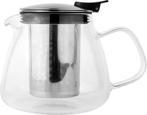 DRW Théière en verre borosilicate de 800 ml avec filtre en acier transparent et chromé 20,5 x 13,5 x 9 cm
