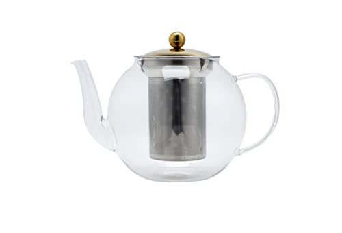 DRW Théière en Verre Borosilicate de 800 ML avec Filtre en Acier Transparent et doré 20,5 x 13,5 x 9 cm