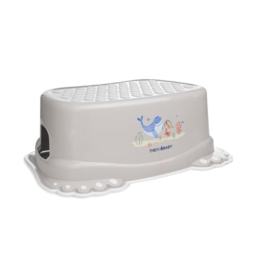 Marchepied antidérapant YOOPI – Rehausseur Stable et sécurisé pour Enfant – Surface et Pieds antiglisse – Design Ergonomique, léger et Solide – Favorise l’autonomie au lavabo ou aux Toilettes – Gris