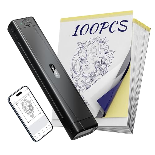 Itari Thermocopieur Tatouage, Imprimante Tattoo avec 100 Feuilles de Papier de Transfert de Tatouage, Imprimante Stencil Tatouage Compatible avec Phone et Tablette, Noir,100 Papier