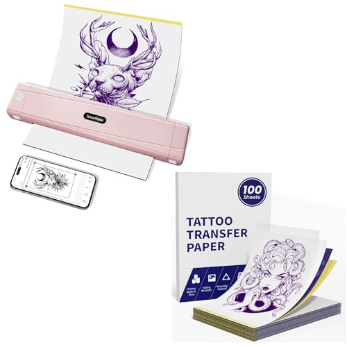 TATTMUSE Rose Thermocopieur Tatouage Bluetooth avec 100 Feuilles de Papier Format A4, Machine Transfert de Tatouage pour Artistes de Tatouage et débutants
