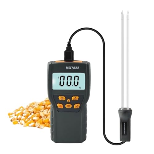 DRAUXI Humidimètre numérique for Grains, thermomètre Alimentaire, testeur d'humidité, analyseur d'hygromètre à Longue sonde, détecteur d'eau, testeur for Haricots de Riz Sensible au numérique