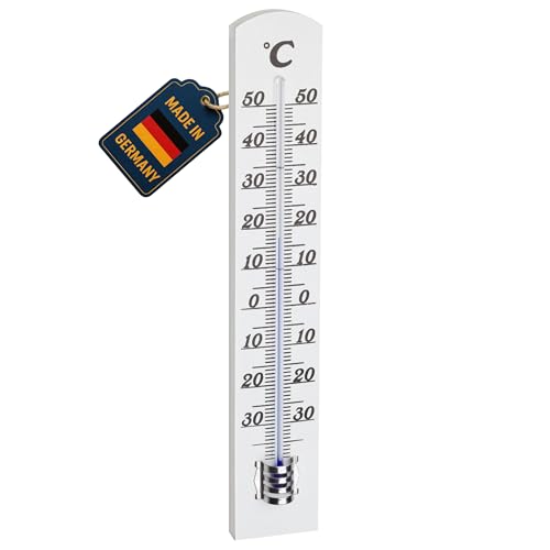 TFA Dostmann Thermomètre analogique d'intérieur et d'extérieur en métal, résistant aux intempéries, Hauteur 26 cm, Blanc