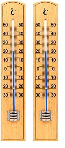 VELAMP Thermomètre intérieur/extérieur en bois 20 cm (Lot de 2)