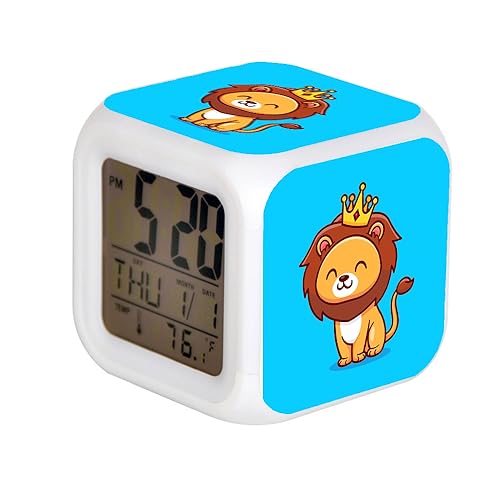 Réveil numérique LED à 7 couleurs changeantes avec date, alarme, thermomètre pour la maison, le bureau, réveil pour enfant, roi lion assis