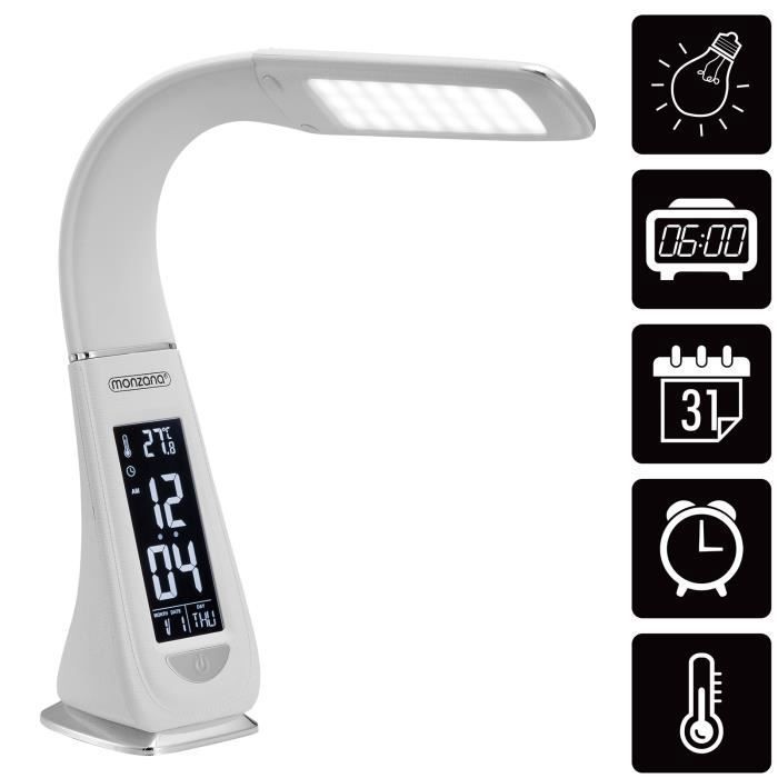 Lampe de Bureau à LED Blanc 4en1 Multifonction Lampe Calendrier Montre thermomètre Maison Lampe de Table Salon luminaire intérieur