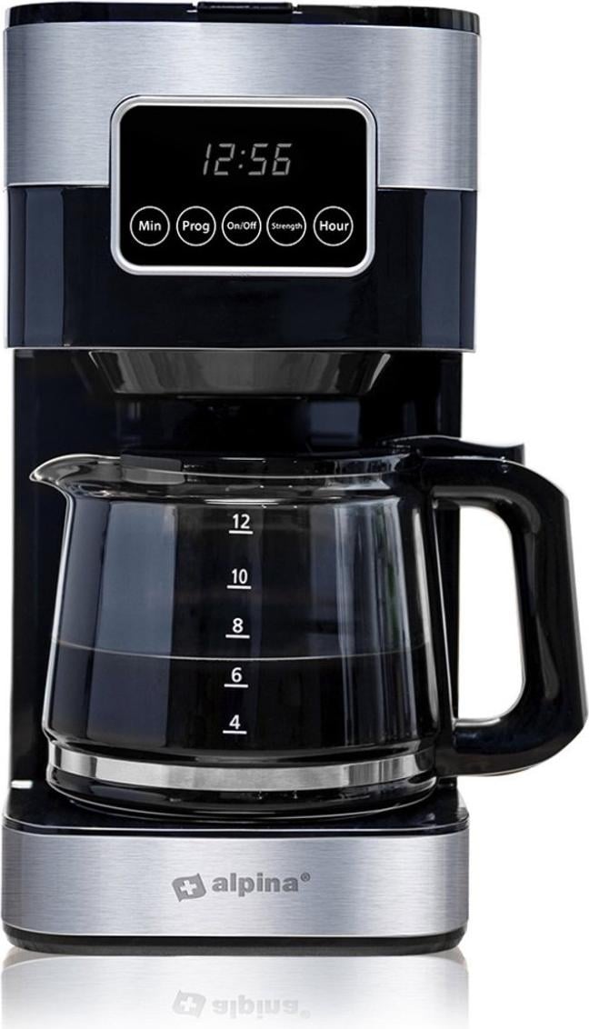 alpina Machine à café Machine à café filtre 1,5L/12 tasses - Coffee Machine avec thermos, affichage numérique, minuterie et plaque chauffante - Intensité du café réglable - Noir