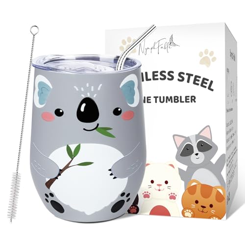 NymphFable Mug Isotherme 12oz Acier Inoxydable, Koala Thermos Café Double Paroi Tasse de Voyage avec Paille et Couvercle