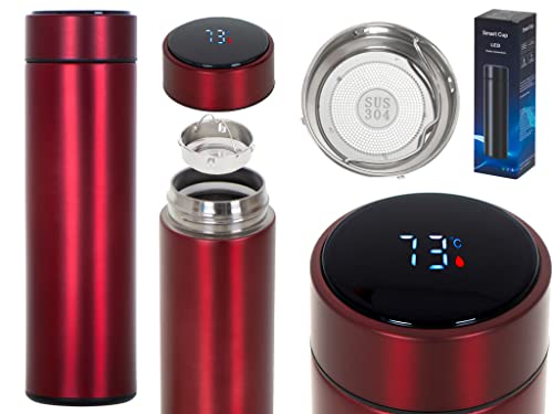 IKONKA LED Gobelet thermique 500ml Smart Thermos pour thé café lait pour enfants boisson contrôle température plastique inox bourgogne