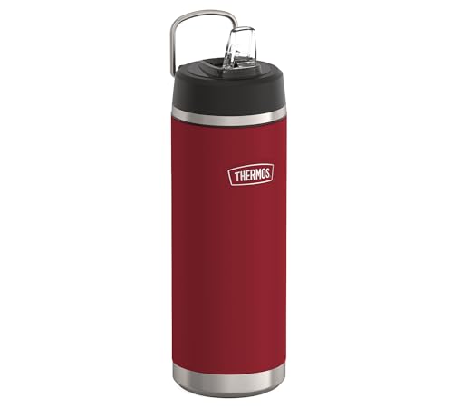 Thermos ICON Bouteille isotherme avec paille 0,71 l, rouge framboise mat, 12 h de froid, en acier inoxydable, passe au lave-vaisselle, sans BPA
