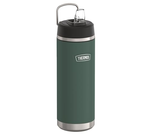 Thermos ICON Bouteille isotherme avec paille - 0,71 l - Vert forêt mat - En acier inoxydable - 12 h à froid - Passe au lave-vaisselle - Sans BPA