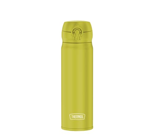 THERMOS Bouteille isotherme, en acier inoxydable, 0,50 l, vert brillant mat, 10 h chaud/20 h froid, entièrement étanche, pour eau, thé, boissons silencieuses, 0,50 l