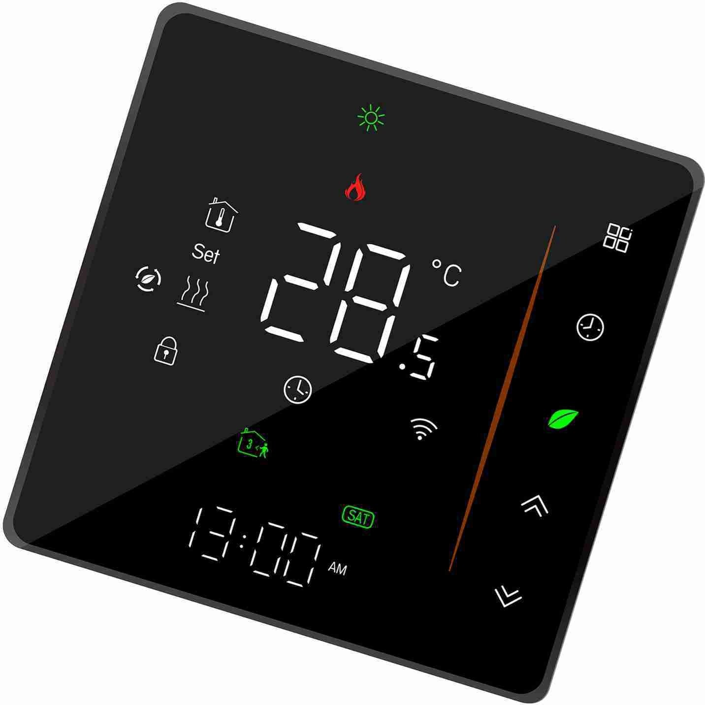 Thermostat intelligent WiFi Contrôleur de température programmable par semaine Compatible avec Alexa/ Home, pour plancher chauffant électrique 16A Noir