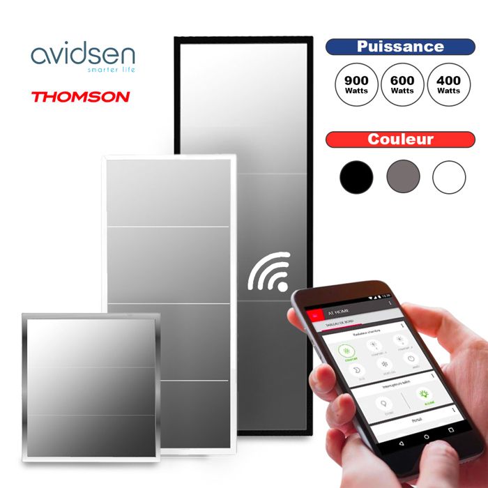THOMSON - Radiateur électrique fixe connecté WiFi à inertie sèche céramique + film avec thermostat interchangeable 1500W THOMSON MOLY horizontal blanc