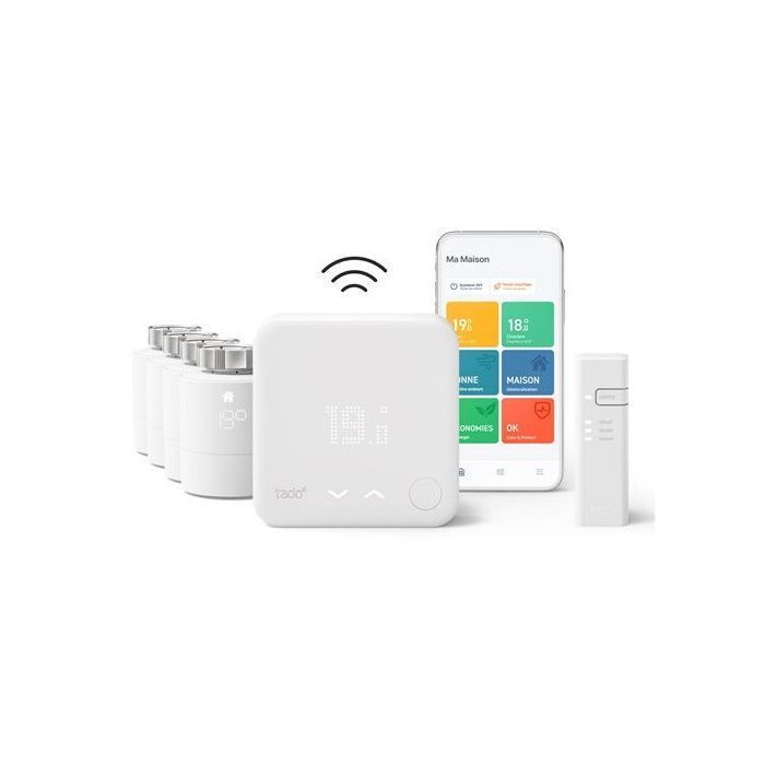 Thermostat connecté Tado Thermostat Intelligent Filaire - Kit de demarrage V3+ et 4 tetes thermostatiques