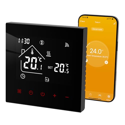 Beok Thermostat Connecté WiFi pour Chauffage au Sol Électrique,Thermostat d'Ambiance Intelligent Thermostats Programmable avec Capteur Externe Compatible Alexa Google Home 16A,Noir