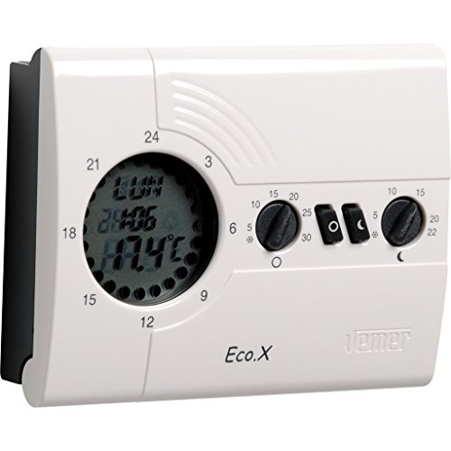 VEMER VN160800 ECO.X-W - Thermostat d'ambiance pour Le Chauffage, Programmation Hebdomadaire, Alimentation par Piles, Blanc