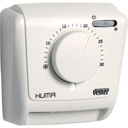 VEMER VE023800 KLIMA SW - Thermostat d'ambiance Mécanique avec Bouton, Fonction Chauffage et de Refroidissement + Sélecteur été/hiver, Blanc
