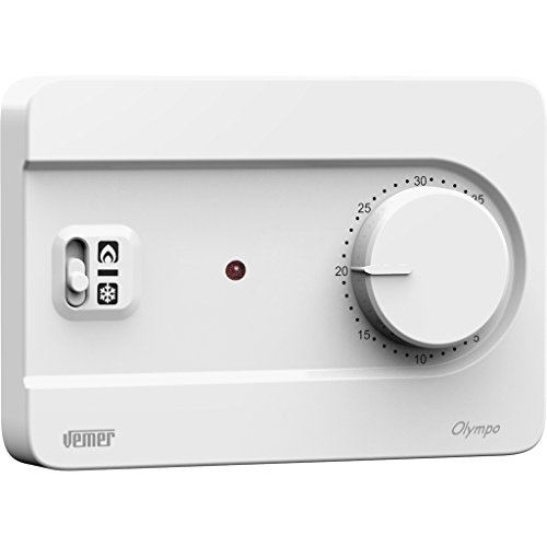 VEMER VE757500 OLYMPO - Thermostat d'ambiance pour Le Chauffage et la Climatisation, Pratique Bouton pour Régler la Température, Alimentation 230V, Blanc