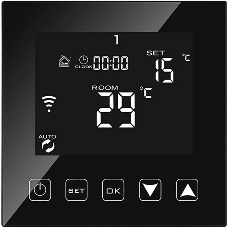 Intelligent Thermostat WiFi Connecté pour Chaudiere gaz/Eau 90-240v,Thermostat de chaudière Programmable Noir
