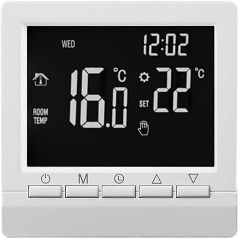 Thermostat d'ambiance pour chaudière filaire avec écran LCD numérique programmable avec modes de planification hebdomadaire et protection anti-gel