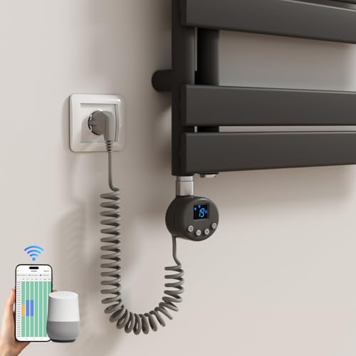 Heilmetz Élément Chauffant Intelligent 300W Anthracite avec WiFi et App pour Radiateur de Salle de Bain, Contrôle par Tuya/Alexa/Google Home, Thermostat Programmable