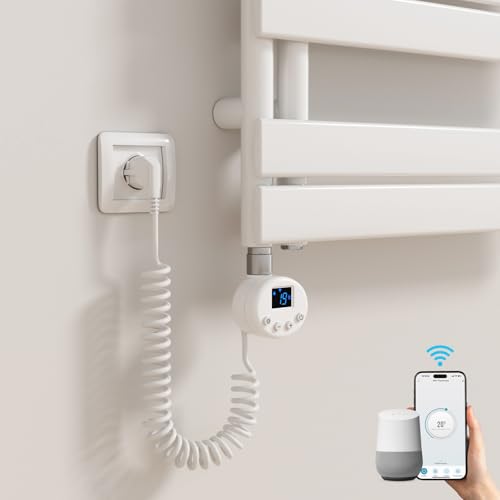 Élément Chauffant pour Radiateur 900W, élément Chauffant sèche-Serviette avec Thermostat, INOX, WiFi, programmable, Barre chauffante pour radiateur de Salle de Bain, Blanc.