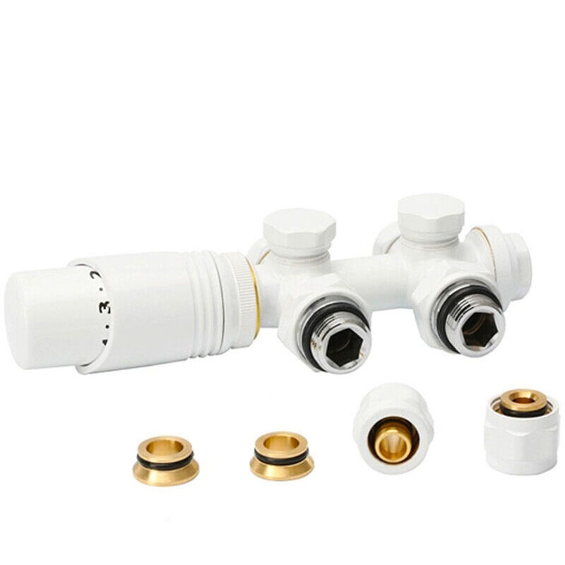 Multibloc avec thermostat, bloc de robinet d'angle et forme de passage pour radiateurs de salle de bain, raccord central, robinetterie, accessoires