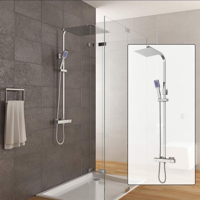 Gojoy - Système de Douche avec Thermostat Robinet de Douche Douche Pluie Set de Douche Douchette Carrée Panneau de Douche Acier Inoxydable Chromé