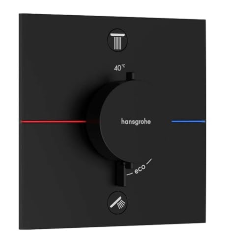 hansgrohe ShowerSelect Comfort E - Mitigeur thermostatique, Robinet encastré avec arrêt de sécurité (SafetyStop) à 40°C, Thermostat carré, 2 sorties, Noir mat