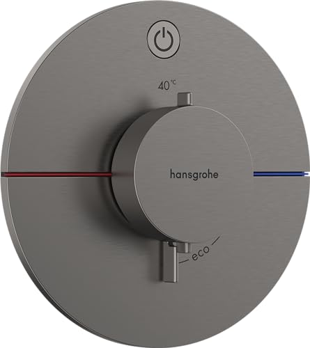 hansgrohe ShowerSelect Comfort S - Mitigeur thermostatique, Robinet encastré avec arrêt de sécurité (SafetyStop) à 40°C, Thermostat rond, 1 sortie, Noir chromé brossé