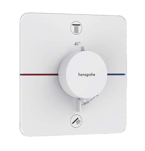 hansgrohe ShowerSelect Comfort Q - Mitigeur thermostatique, Robinet encastré avec arrêt de sécurité (SafetyStop) à 40°C, Thermostat 2 sorties, Blanc mat