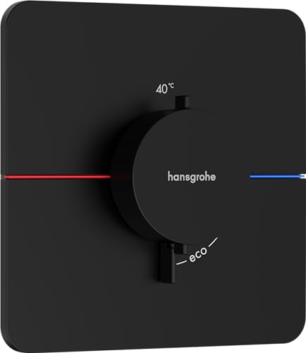 hansgrohe ShowerSelect Comfort E - Mitigeur thermostatique, Robinet encastré avec arrêt de sécurité (SafetyStop) à 40°C, Thermostat carré, 1 sortie, Noir mat