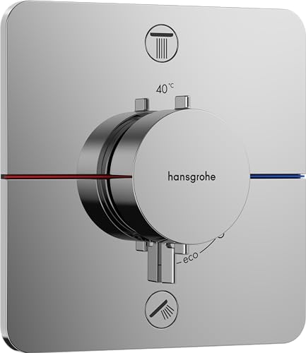 hansgrohe ShowerSelect Comfort E - Mitigeur thermostatique, Robinet encastré avec arrêt de sécurité (SafetyStop) à 40°C, Thermostat carré, 2 sorties, Chromé