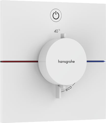 hansgrohe ShowerSelect Comfort E - Mitigeur thermostatique, Robinet encastré avec arrêt de sécurité (SafetyStop) à 40°C, Thermostat carré, 1 sortie, Blanc mat