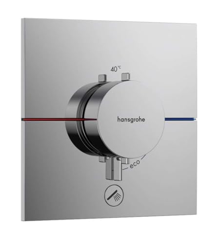 hansgrohe ShowerSelect Comfort E - Mitigeur thermostatique avec 1 sortie additionnelle, Robinet encastré avec arrêt de sécurité (SafetyStop) à 40°C, Thermostat carré, 1 sortie, Chromé