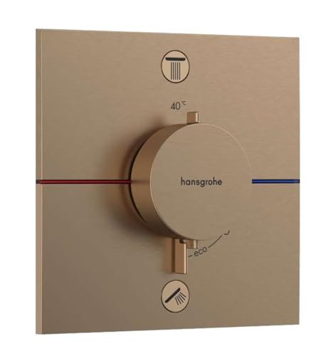 hansgrohe ShowerSelect Comfort E - Mitigeur thermostatique, Robinet encastré avec arrêt de sécurité (SafetyStop) à 40°C, Thermostat carré, 2 sorties, Bronze brossé