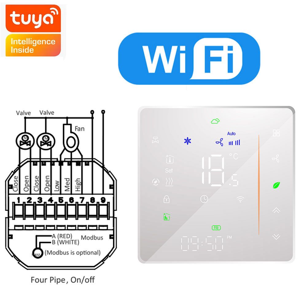 Thermostat HVAC Tuya ZigBee avec contrôleur de température intelligent à affichage numérique,3 vitesses de chauffage et de refroidissement pour contrôle de la climatisation - Type 4P AND WIFI White #B