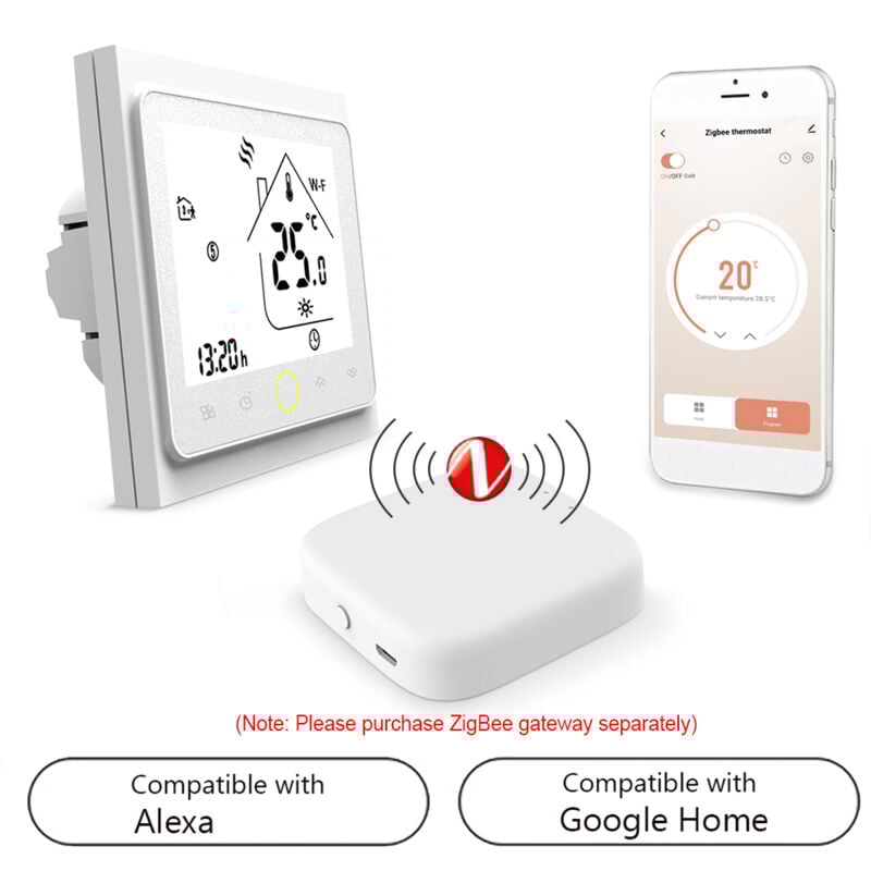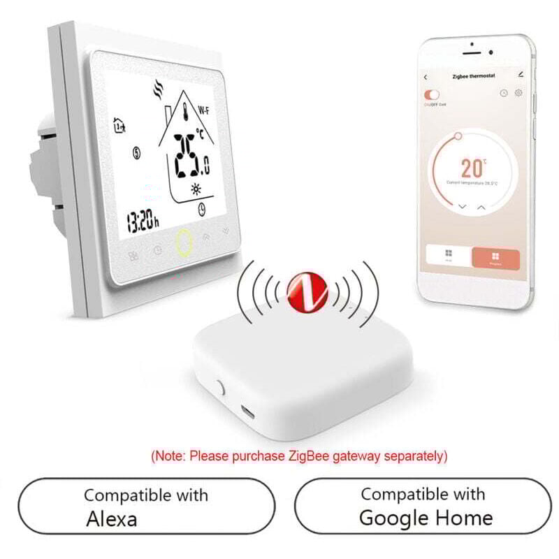 HOHOVYVY Zigbee Thermostat de chauffage au sol Wi-Fi avec commande vocale 3 modes pour chauffage à eau ou électrique Compatible avec Tuya Smart pour passerelle (BZEH)