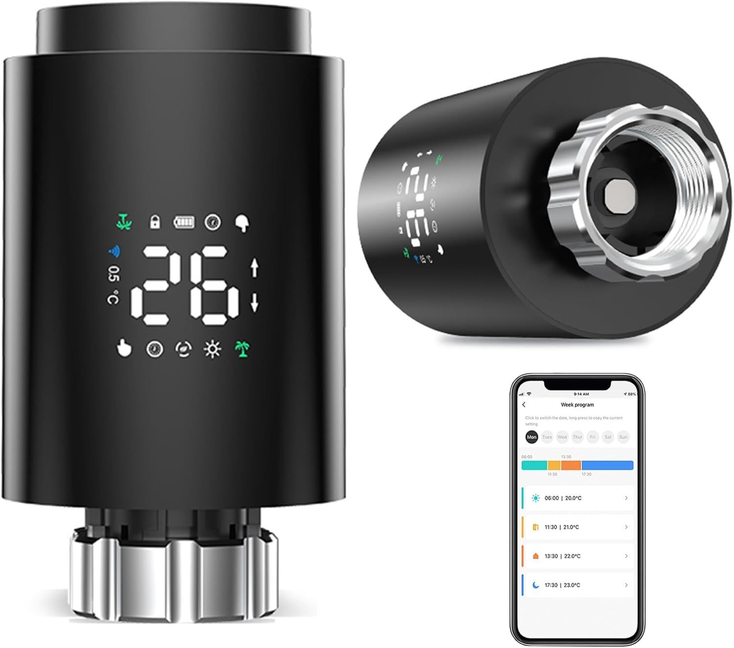 Thermostat actionneur Zigbee pour radiateur vanne radiateur, écran LCD sur Le Corps, alimenté par Piles AA, Compatible avec Amazon Alexa et Google Home