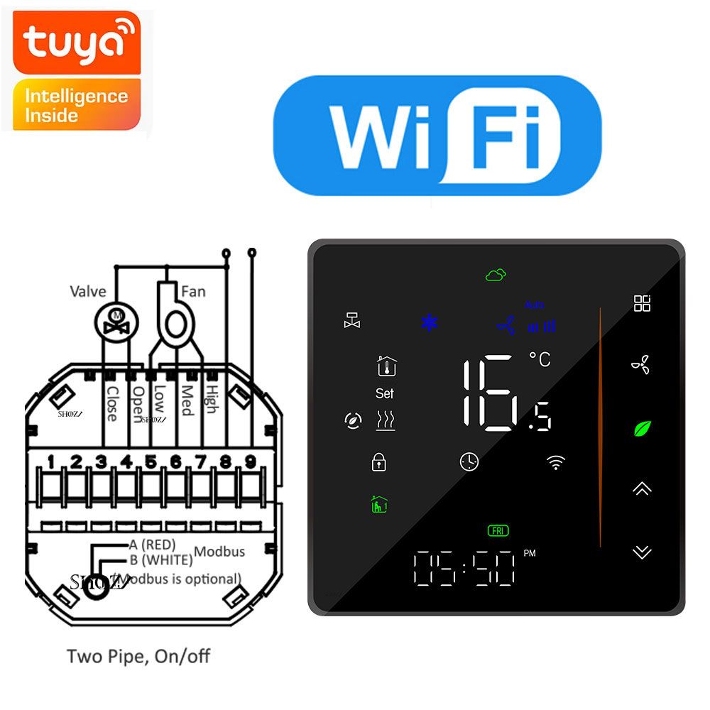 Thermostat HVAC Tuya ZigBee avec contrôleur de température intelligent à affichage numérique,3 vitesses de chauffage et de refroidissement pour contrôle de la climatisation - Type 2P AND WIFI Black #B
