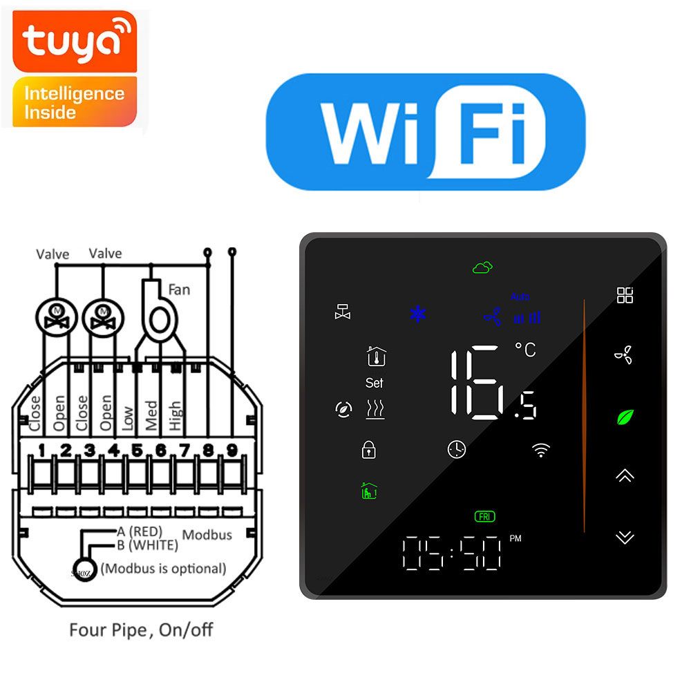 Thermostat HVAC Tuya ZigBee avec contrôleur de température intelligent à affichage numérique,3 vitesses de chauffage et de refroidissement pour contrôle de la climatisation - Type 4P AND WIFI Black #A