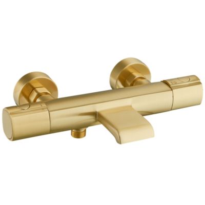 Mitigeur de baignoire thermostatique mural avec bec cascade, doré, Essebagno Carra