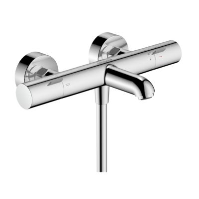 hansgrohe Ecostat Fine - Mitigeur baignoire thermostatique, Robinet de baignoire apparent avec arrêt de sécurité (SafetyStop) à 40°C, Thermostat 2 sorties, Chromé, 13325000