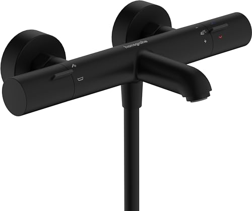 hansgrohe Ecostat Element - Mitigeur baignoire thermostatique, Robinet de baignoire apparent avec arrêt de sécurité (SafetyStop) à 40°C, Thermostat 2 sorties, Noir mat, 13347670